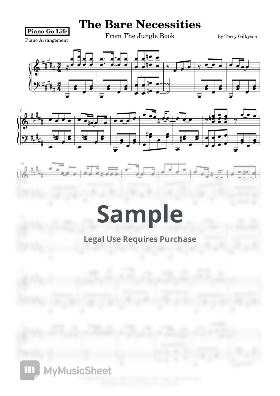 Terry Gilkyson The Bare Necessities Sheets by Piano Go Life